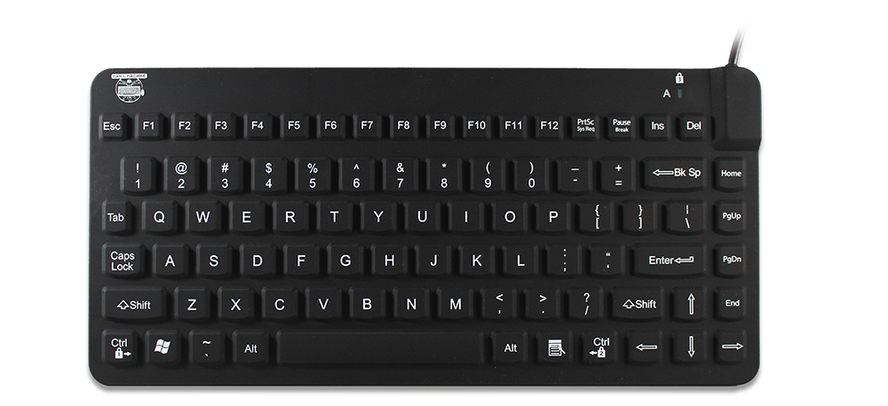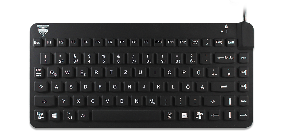 | Hygienische und robuste Silikon Tastatur Slim Cool im kompakten PC Standardlayout mit flachem Tastenprofil (LP low profile) | |