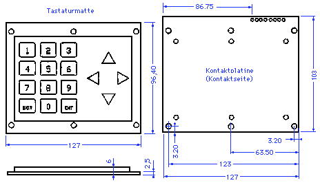 Nummernblock mit 16 Tasten und 4 integrierten Cursortasten. Als Hoch- und Querformat erhältlich.