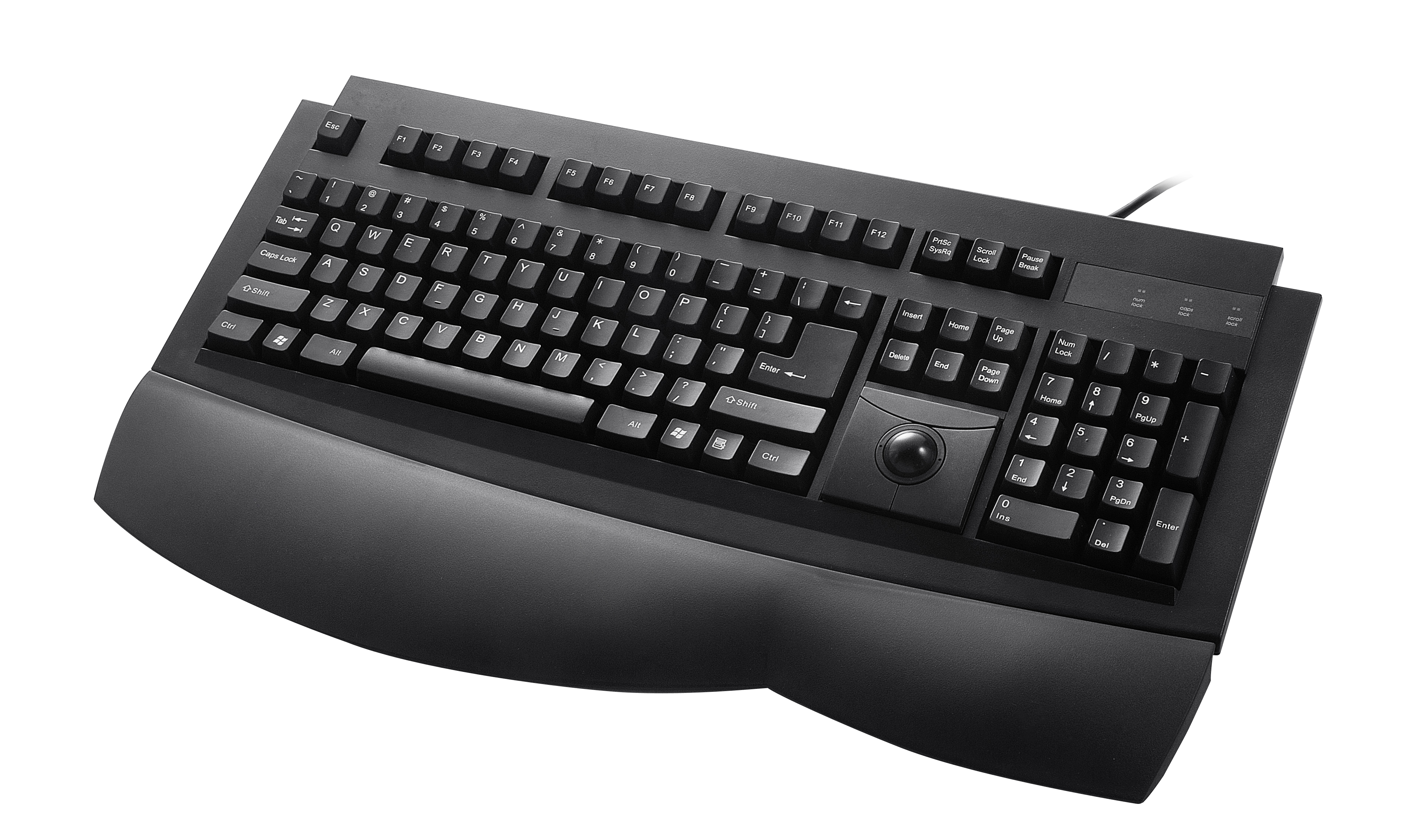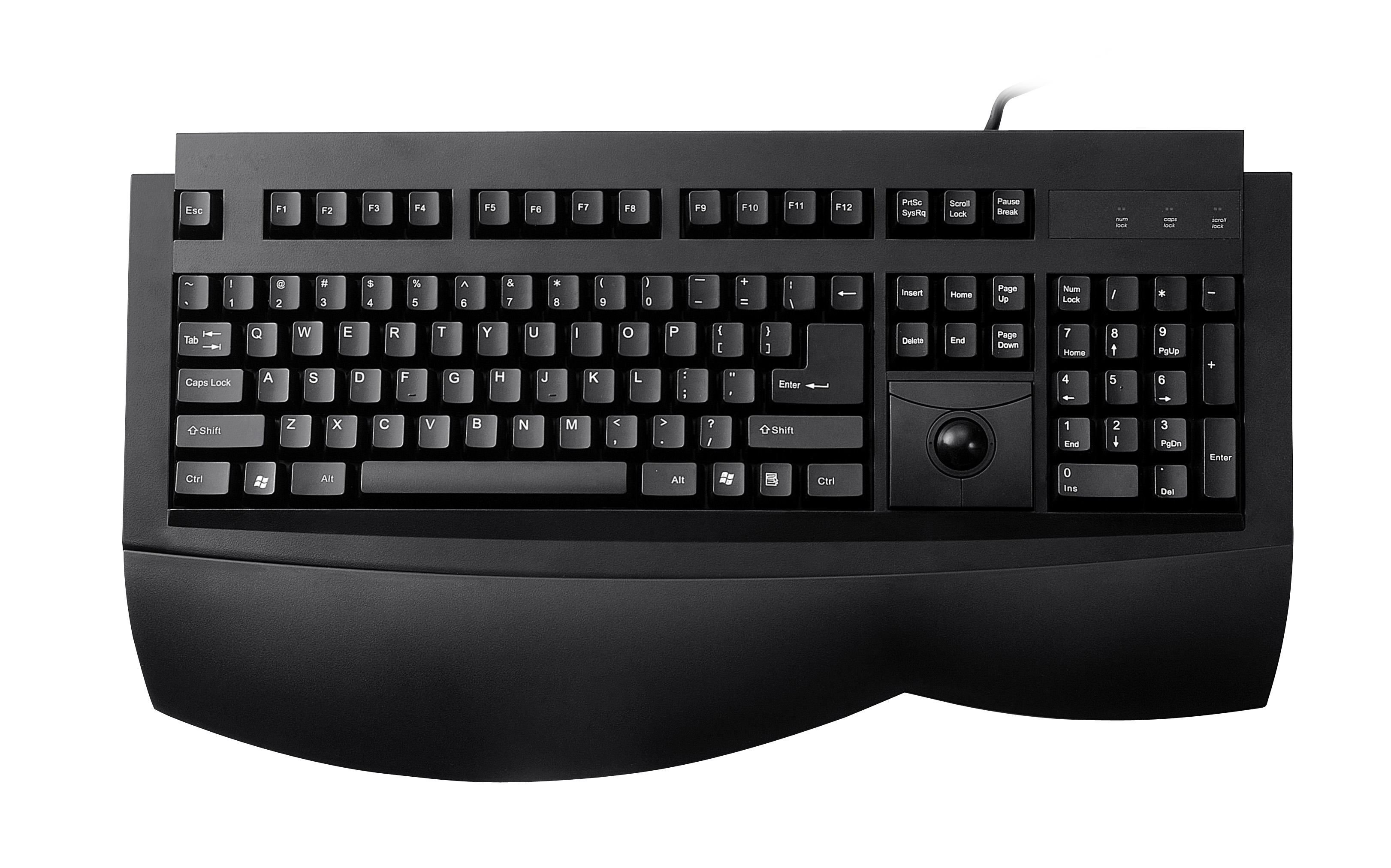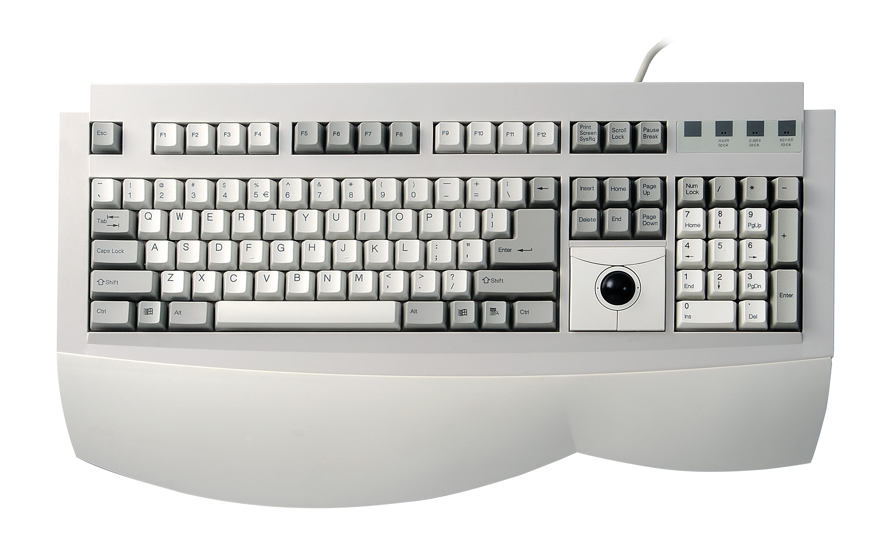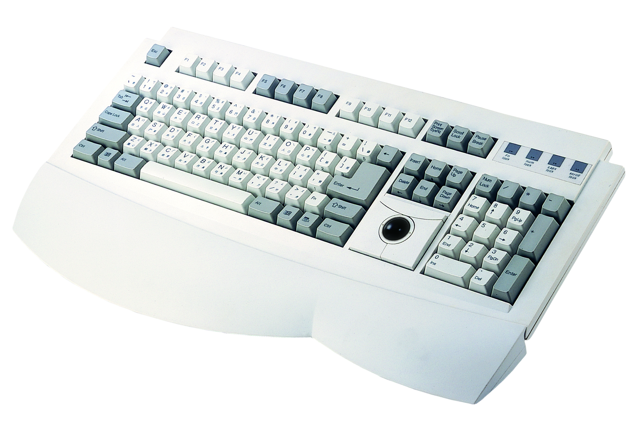 Standardtastatur mit 95 Tasten und integriertem Trackball, auch für den Schreibtisch zu Hause geeignet.
