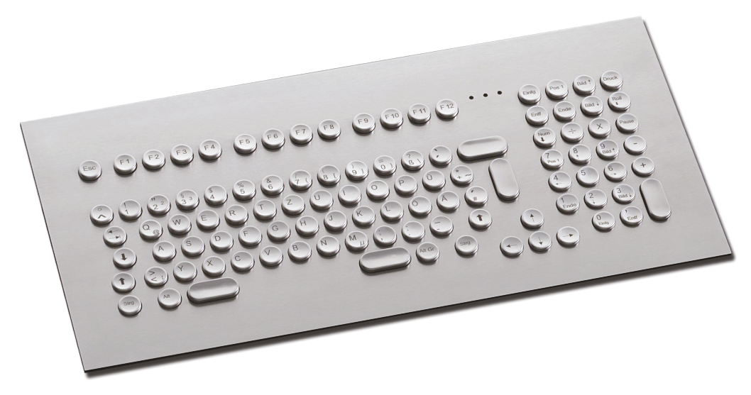 Edelstahltastatur in Langhubform mit 102 Tasten für vandalengefährdete Anwendungen.