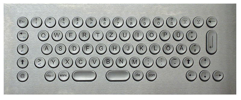 Vandalengeschützte Edelstahltastatur speziell für Internet-Terminals.