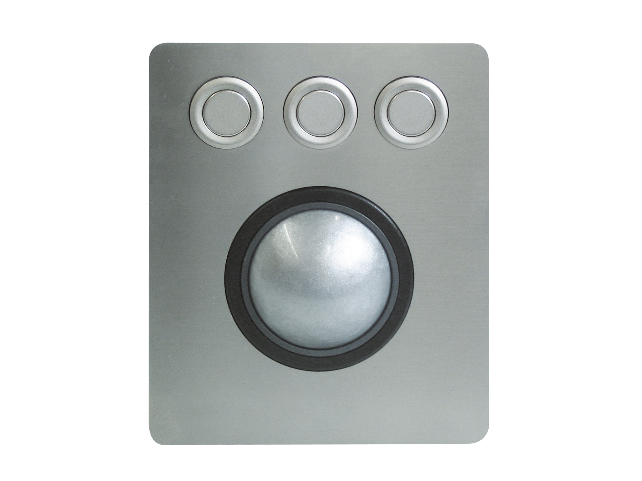 | Die Kugel ist in einer stoßableitenden Edelstahlfrontplatte integriert, die wahlweise mit zwei oder drei Maustasten angeboten wird. Auf Wunsch des Kunden kann er auch in andere Frontplatten integriert werden. Der Trackball besteht aus einem glasfaserverstärkten Kunststoffmaterial und zeichnet sich durch eine hohe chemische und mechanische Beständigkeit aus. | |
