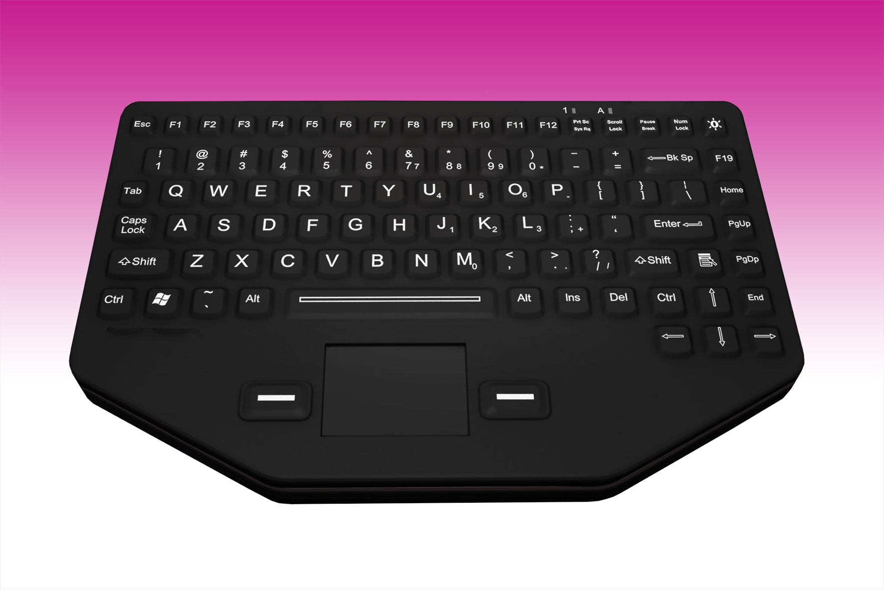 | Die Buchstaben und Zahlen auf den Tasten sind überdurchschnittlich groß und können somit leichter gelesen und auch mit Handschuhen bedient werden. In dunklen Arbeitsumgebungen erleichtert die stufenlose rote Hintergrundbeleuchtung die Dateneingabe. Selbst im Büro und auch in schmutzigen oder sterilen Bereichen bietet die widerstandsfähige und stabile Tastatur einen zuverlässigen Schutz gegen Schmutz und Flüssigkeiten. Per USB-Anschluss bekommt das Gerät die nötige Stromzufuhr. | |