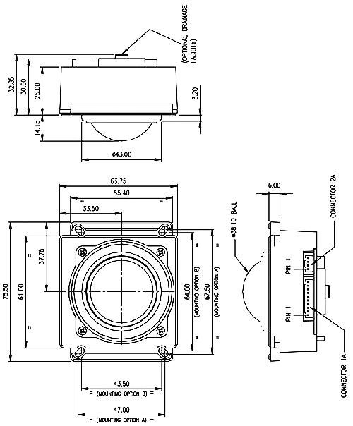 Einbaumodul mit 38 mm Kugeldurchmesser, Schutzgrad IP 65 (statisch)