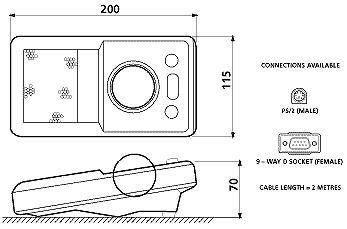Tischtrackball mit 3 Tasten, Kugeldurchmesser 57 mm und Schutzgrad IP40.