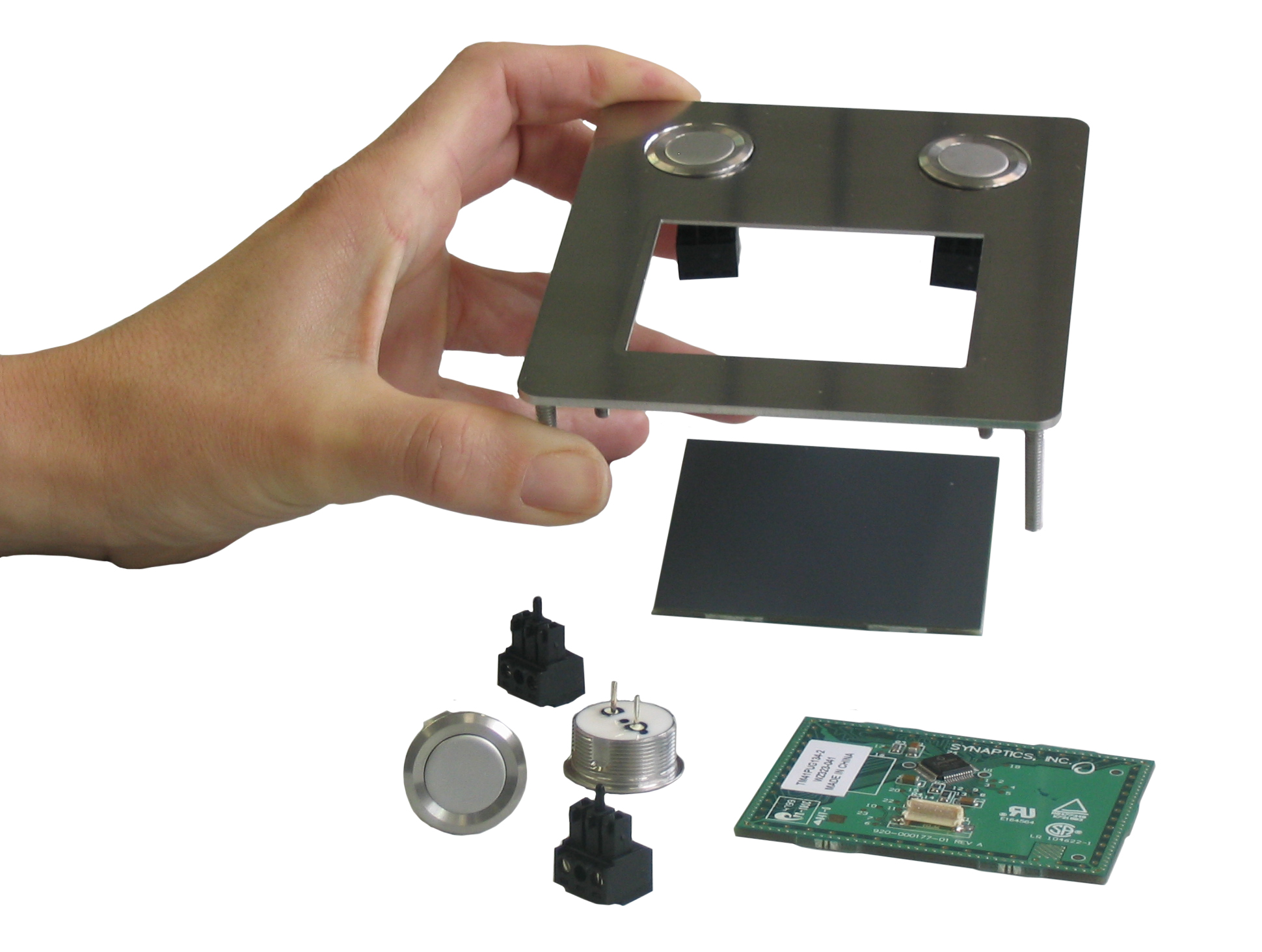 | Die Frontplatte lässt sich durch die rückseitigen Stehbolzen sehr leicht in vorhandene Applikationen, wie Terminals, Industrieanwendungen, Luftfahrt- und Marinebereichen und medizintechnischen Anwendungen integrieren. | |